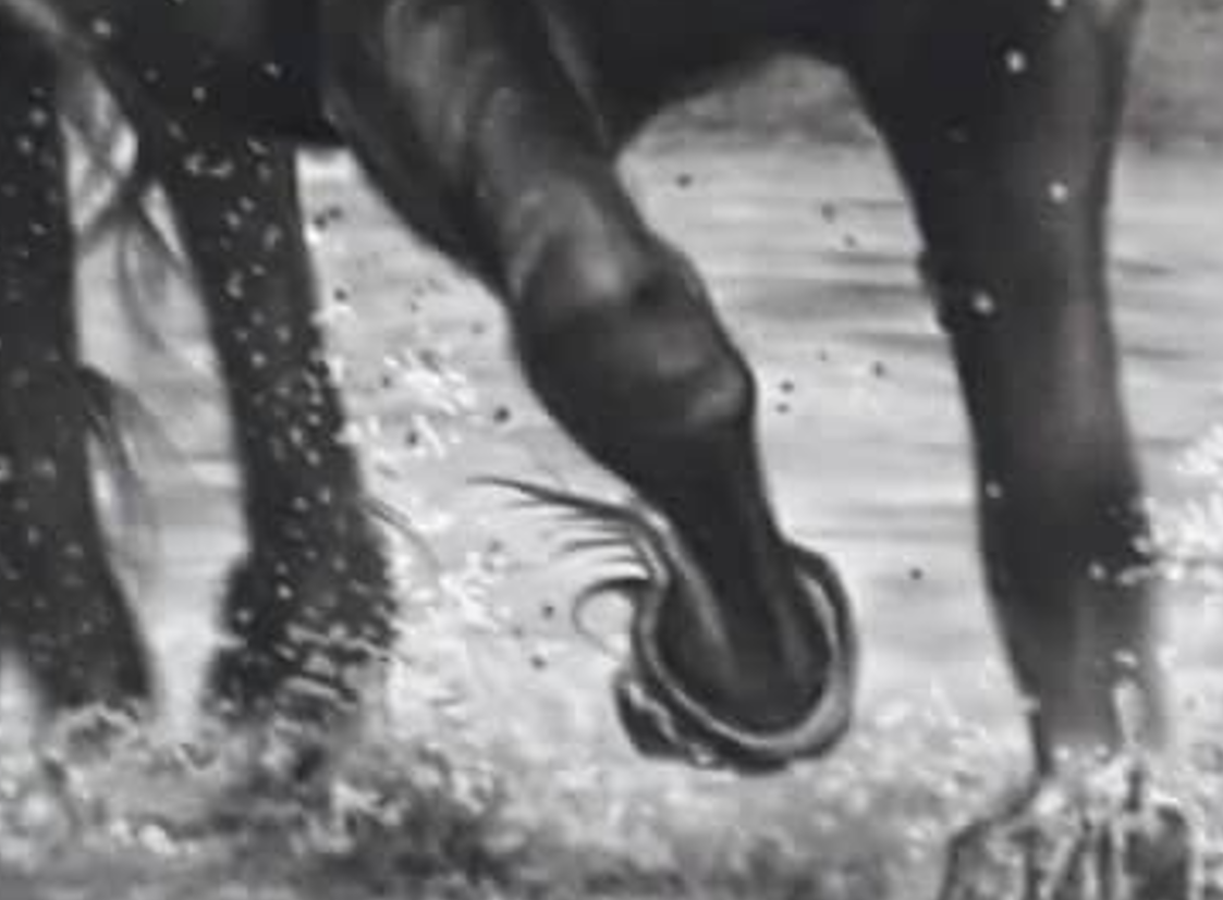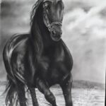 این اثر هنری بینظیر با تکنیک سیاهقلم خلق شده و تصویر زیبای اسبی قدرتمند را در حال دویدن در آب به تصویر میکشد. ضربات قلم با دقت و مهارتی فوقالعاده اجرا شدهاند و ترکیب پاشش آب و حرکت عضلانی اسب، پویایی و احساس قدرت را در بیننده القا میکند.